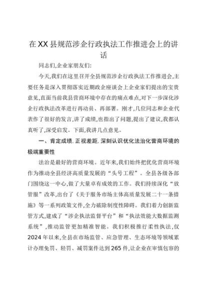 / 【七哥公文】2025年:在XX县规范涉企行政执法工作推进会上的讲话+更多免费公文+VX:QiGeGongWen2024