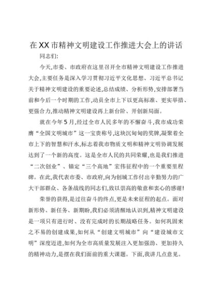 / 【七哥公文】2025年:在XX市精神文明建设工作推进大会上的讲话+更多免费公文+VX:QiGeGongWen2024