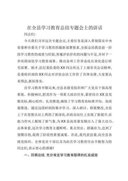 【七哥公文】2025年:在全县贯彻中央八项规定精神学习教育总结专题会上的讲话(1)+更多免费公文+VX:QiGeGongWen2024