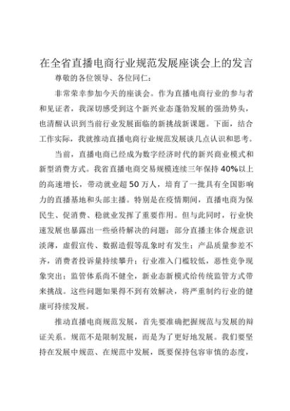 【七哥公文】2025年:在全省直播电商行业规范发展座谈会上的发言+更多免费公文+VX:QiGeGongWen2024