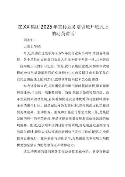 【七哥公文】2025年:在XX集团2025年宣传业务培训班开班式上的动员讲话+更多免费公文+VX:QiGeGongWen2024