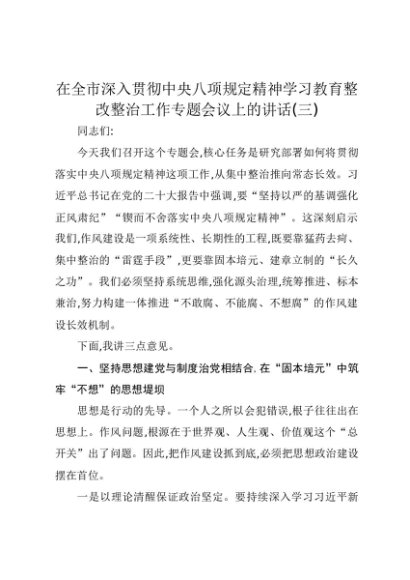 【七哥公文】2025年:在全市深入贯彻中央八项规定精神学习教育整改整治工作专题会议上的讲话(三)+更多免费公文+VX:QiGeGongWen2024
