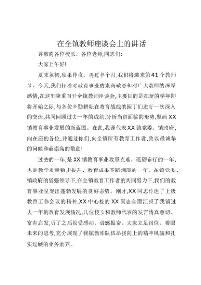 【七哥公文】2025年:在全镇教师座谈会上的讲话+更多免费公文+VX:QiGeGongWen2024