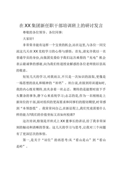 / 【七哥公文】2025年:在XX集团新任职干部培训班上的研讨发言+更多免费公文+VX:QiGeGongWen2024