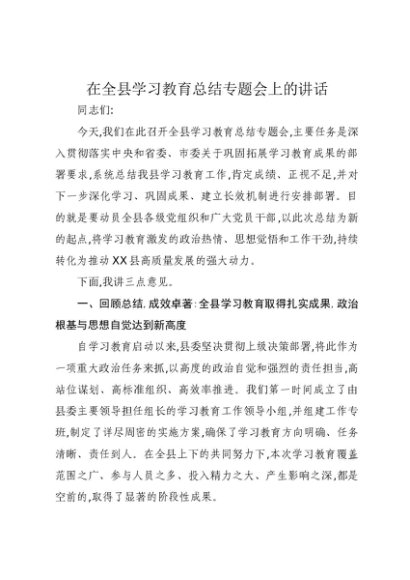 【七哥公文】2025年:在全县贯彻中央八项规定精神学习教育总结专题会上的讲话(3)+更多免费公文+VX:QiGeGongWen2024