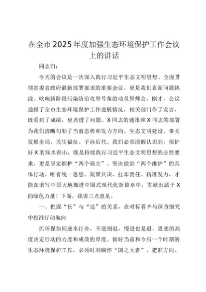 【七哥公文】2025年:在全市2025年度加强生态环境保护工作会议上的讲话+更多免费公文+VX:QiGeGongWen2024