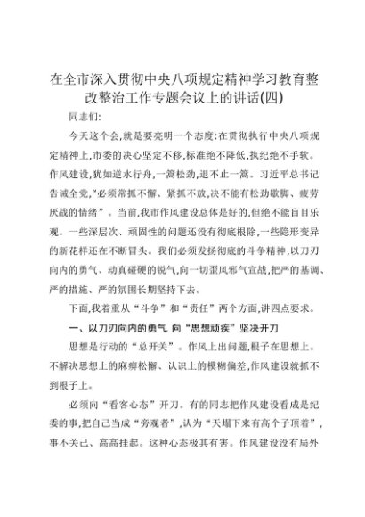 【七哥公文】2025年:在全市深入贯彻中央八项规定精神学习教育整改整治工作专题会议上的讲话(四)+更多免费公文+VX:QiGeGongWen2024