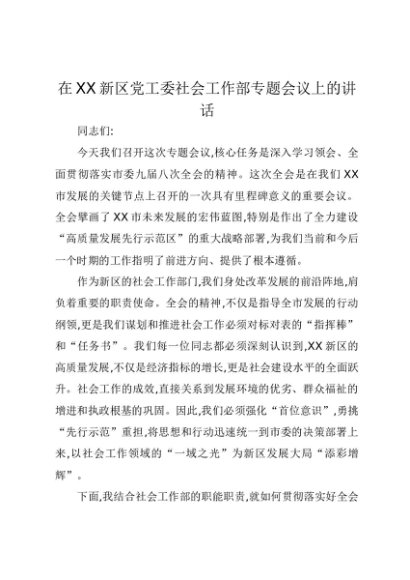 / 【七哥公文】2025年:在XX新区党工委社会工作部专题会议上的讲话+更多免费公文+VX:QiGeGongWen2024