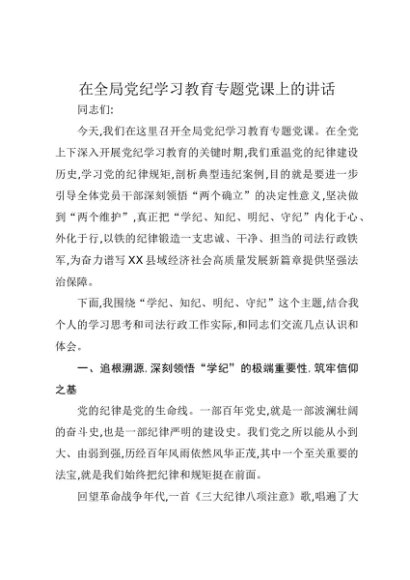 / 【七哥公文】2025年:在全局党纪学习教育专题党课上的讲话+更多免费公文+VX:QiGeGongWen2024