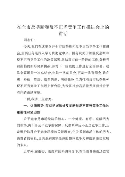 / 【七哥公文】2025年:在全市反垄断和反不正当竞争工作推进会上的讲话+更多免费公文+VX:QiGeGongWen2024