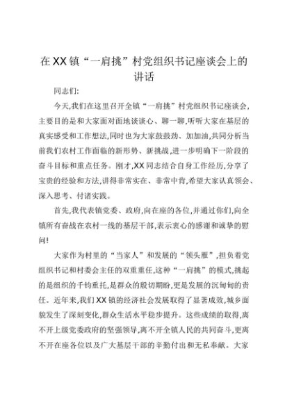 / 【七哥公文】2025年:在XX镇“一肩挑”村党组织书记座谈会上的讲话+更多免费公文+VX:QiGeGongWen2024