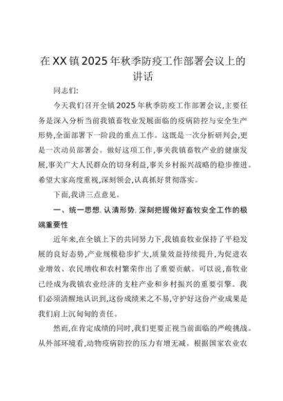 / 【七哥公文】2025年:在XX镇2025年秋季防疫工作部署会议上的讲话+更多免费公文+VX:QiGeGongWen2024