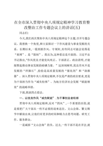 【七哥公文】2025年:在全市深入贯彻中央八项规定精神学习教育整改整治工作专题会议上的讲话(五)+更多免费公文+VX:QiGeGongWen2024
