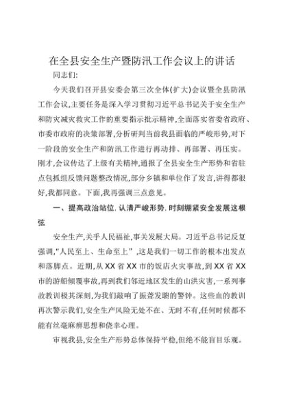 / 【七哥公文】2025年:在全县安全生产暨防汛工作会议上的讲话+更多免费公文+VX:QiGeGongWen2024
