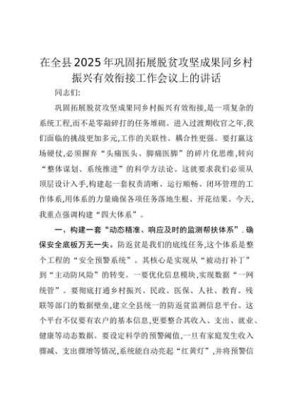 【七哥公文】2025年:在全县2025年巩固拓展脱贫攻坚成果同乡村振兴有效衔接工作会议上的讲话+更多免费公文+VX:QiGeGongWen2024