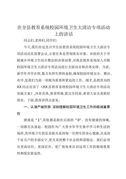 【七哥公文】2025年:在全县教育系统校园环境卫生大清洁专项活动上的讲话+更多免费公文+VX:QiGeGongWen2024