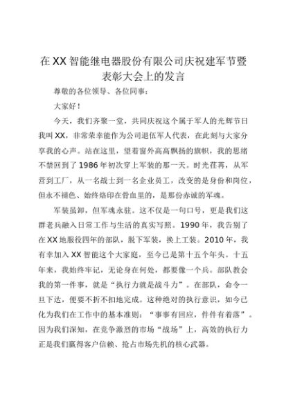 【七哥公文】2025年:在XX智能继电器股份有限公司庆祝建军节暨表彰大会上的发言+更多免费公文+VX:QiGeGongWen2024