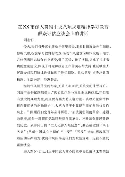 【七哥公文】2025年:在XX市深入贯彻中央八项规定精神学习教育群众评估座谈会上的讲话+更多免费公文+VX:QiGeGongWen2024