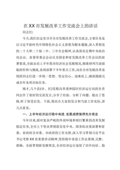 / 【七哥公文】2025年:在XX市发展改革工作交流会上的讲话+更多免费公文+VX:QiGeGongWen2024