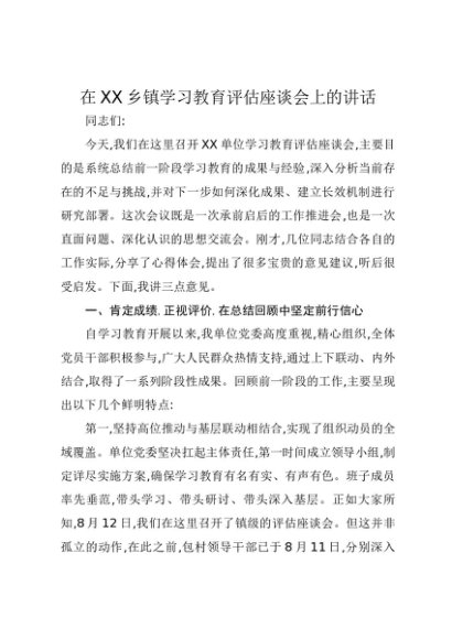 【七哥公文】2025年:在XX乡镇贯彻中央八项规定精神学习教育评估座谈会上的讲话+更多免费公文+VX:QiGeGongWen2024