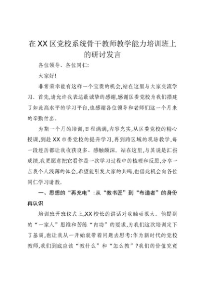 【七哥公文】2025年:在XX区党校系统骨干教师教学能力培训班上的研讨发言+更多免费公文+VX:QiGeGongWen2024