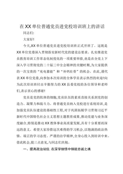 / 【七哥公文】2025年:在XX单位普通党员进党校培训班上的讲话+更多免费公文+VX:QiGeGongWen2024