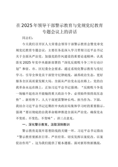 【七哥公文】2025年:在2025年领导干部警示教育与党规党纪教育专题会议上的讲话+更多免费公文+VX:QiGeGongWen2024