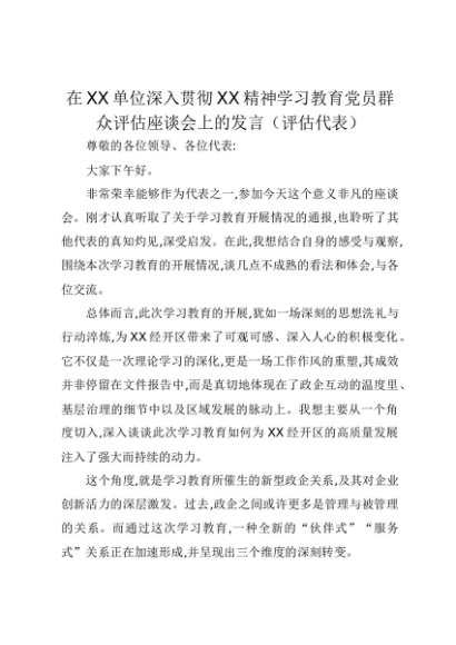 【七哥公文】2025年:在XX单位深入贯彻中央八项规定精神学习教育党员群众评估座谈会上的发言(评估代表)+更多免费公文+VX:QiGeGongWen2024