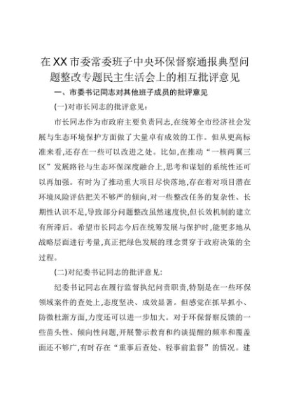 【七哥公文】2025年:在XX市委常委班子中央环保督察通报典型问题整改专题民主生活会上的相互批评意见+更多免费公文+VX:QiGeGongWen2024