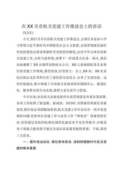 / 【七哥公文】2025年:在XX市直机关党建工作推进会上的讲话+更多免费公文+VX:QiGeGongWen2024