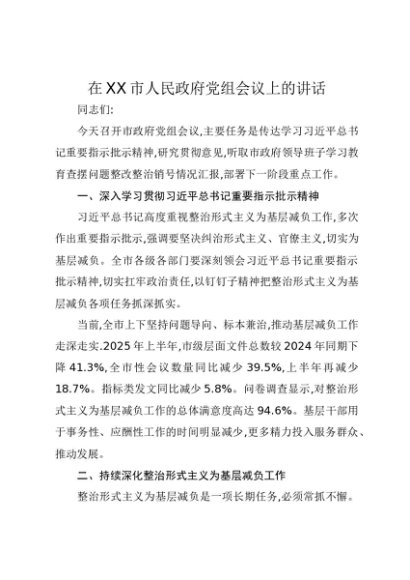 / 【七哥公文】2025年:在XX市人民政府党组会议上的讲话+更多免费公文+VX:QiGeGongWen2024