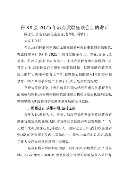 / 【七哥公文】2025年:在XX县2025年教育发展座谈会上的讲话+更多免费公文+VX:QiGeGongWen2024