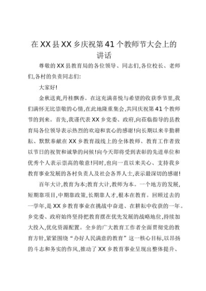 / 【七哥公文】2025年:在XX县XX乡庆祝第41个教师节大会上的讲话+更多免费公文+VX:QiGeGongWen2024