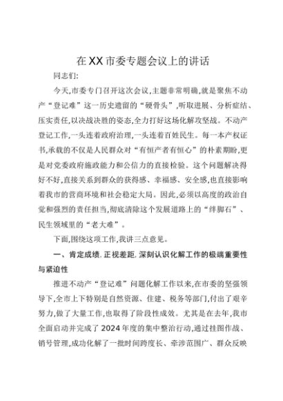 / 【七哥公文】2025年:在XX市委专题会议上的讲话+更多免费公文+VX:QiGeGongWen2024