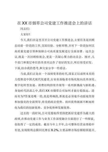 / 【七哥公文】2025年:在XX市烟草公司党建工作推进会上的讲话+更多免费公文+VX:QiGeGongWen2024