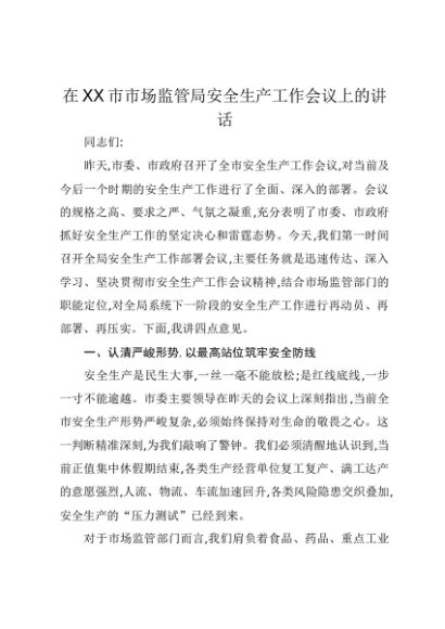 / 【七哥公文】2025年:在XX市市场监管局安全生产工作会议上的讲话+更多免费公文+VX:QiGeGongWen2024