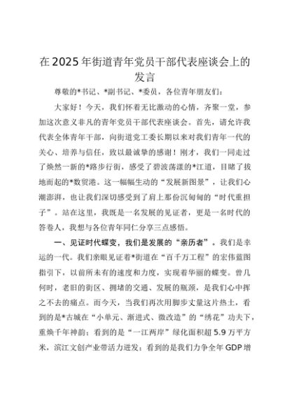 / 【七哥公文】2025年:在2025年街道青年党员干部代表座谈会上的发言+更多免费公文+VX:QiGeGongWen2024