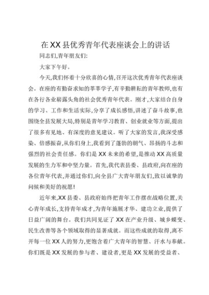 / 【七哥公文】2025年:在XX县优秀青年代表座谈会上的讲话+更多免费公文+VX:QiGeGongWen2024