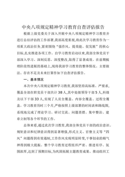 / 【七哥公文】2025年:中央八项规定精神学习教育自查评估报告+更多免费公文+VX:QiGeGongWen2024