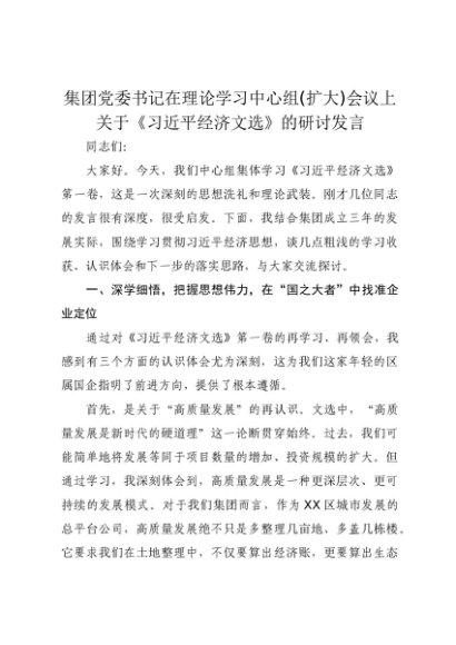 【七哥公文】2025年:集团党委书记在理论学习中心组(扩大)会议上关于《习近平经济文选》的研讨发言+更多免费公文+VX:QiGeGongWen2024