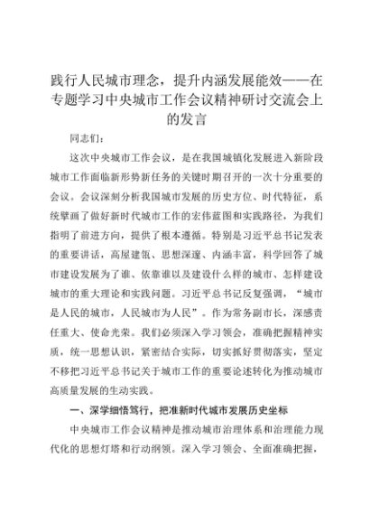 【七哥公文】2025年:践行人民城市理念,提升内涵发展能效——在专题学习中央城市工作会议精神研讨交流会上的发言+更多免费公文+VX:QiGeGongWen2024