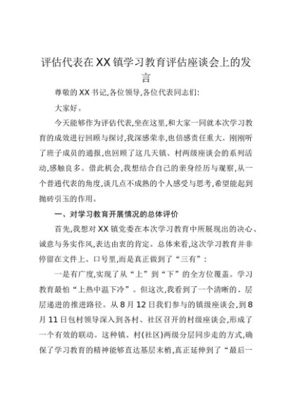【七哥公文】2025年:评估代表在XX镇贯彻中央八项规定精神学习教育评估座谈会上的发言+更多免费公文+VX:QiGeGongWen2024