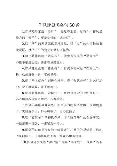 / 【七哥公文】2025年:作风建设类金句50条+更多免费公文+VX:QiGeGongWen2024