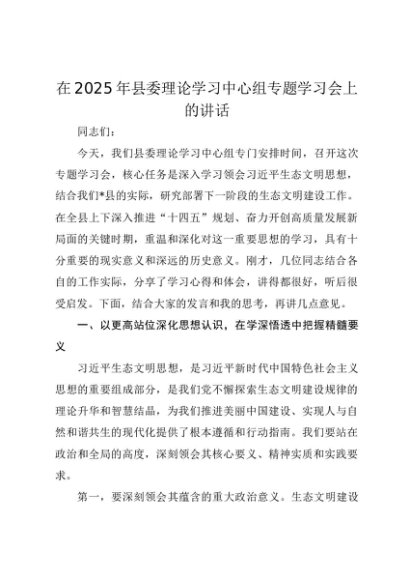 【七哥公文】2025年:在2025年县委理论学习中心组专题学习会上的讲话+更多免费公文+VX:QiGeGongWen2024