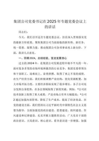 【七哥公文】2025年:集团公司党委书记在2025年专题党委会议上的讲话+更多免费公文+VX:QiGeGongWen2024