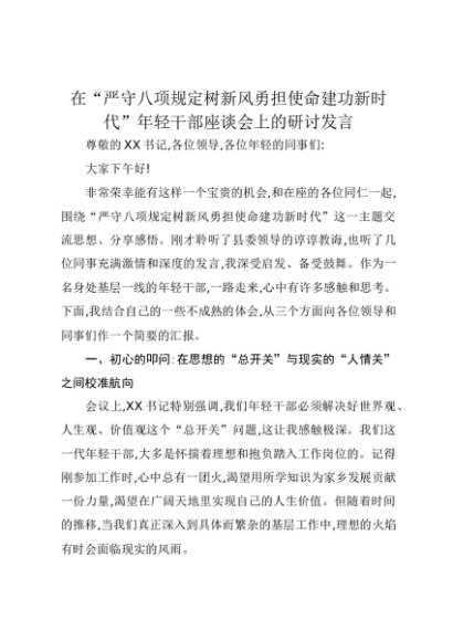 【七哥公文】2025年:在“严守八项规定树新风勇担使命建功新时代”年轻干部座谈会上的研讨发言+更多免费公文+VX:QiGeGongWen2024