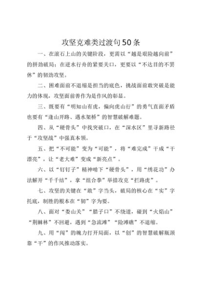 / 【七哥公文】2025年:攻坚克难类过渡句50条+更多免费公文+VX:QiGeGongWen2024