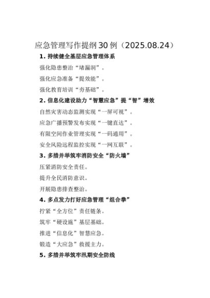 / 【七哥公文】2025年:应急管理写作提纲30例(2025.08.24)+更多免费公文+VX:QiGeGongWen2024