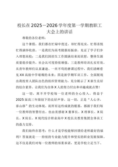 【七哥公文】2025年:校长在2025-2026学年度第一学期教职工大会上的讲话:以公能铸新魂,以日新启征程+更多免费公文+VX:QiGeGongWen2024