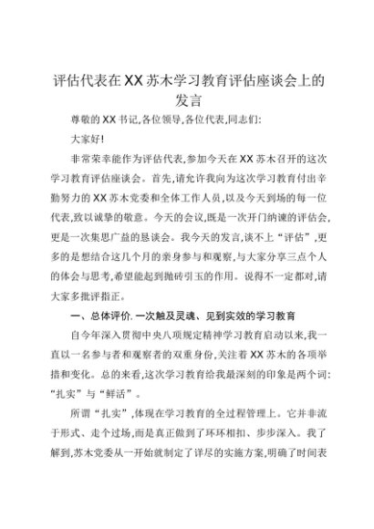 【七哥公文】2025年:评估代表在XX苏木贯彻中央八项规定精神学习教育评估座谈会上的发言1+更多免费公文+VX:QiGeGongWen2024